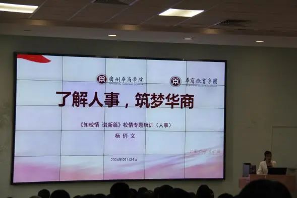 人事工作是学校管理的核心环节之一,对于新教职工来说,了解学校的人事政策和自身在人事体系中的发展路径至关重要;杨俏文副处长针对人事处的工作内容、教师职业晋升路径、福利保障政策以及规范行为的要求等方面开展了培训。她从人事处的组织架构和主要工作入手,详细介绍了教师培养培训体系,涵盖新教师入职培训、青年教师培训、骨干教师重点培养等不同层次,旨在帮助教师快速融入,实现职业发展。她还介绍了教职工的晋升之路、学校的福利保障政策,旨在提升教师的幸福感。此外,她还强调,教职工要认真学习《中华人民共和国教师法》、《新时代高校教师职业行为十项准则》等法律法规,遵守学校各项规章制度,规范自身行为,做优秀华商人。
