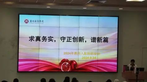 教务处处长金伟娇负责教务专题培训,教务工作直接关系到学校的教学秩序、教学质量和学生的学习体验,新教职工需要深入了解教务管理的各项规定。金伟娇处长从合格评估中教学建设的两个关键点:保底与冲高展开讲述,围绕现行48个教学管理制度,包括课堂教学、课程考核、指导学生、教学事故的影响、教学改革与教学建设、教师教学业绩考核、教学相关的奖励政策七方面进行了一一讲解。 希望全体新教职工锚定目标新开局,守正创新促发展,聚力引领绘蓝图,“教”以共进,“研”以致远。