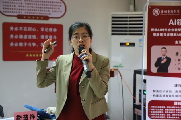 随后,季老师围绕“AI领导力的底层逻辑”、“AI生产方式的革命”、“企业应用AI的五个层次”、“AI时代领导力的迭代”以及“AI时代风险和展望”五个板块,通过丰富的案例和实践经验,深入剖析了如何运用AI技术提升组织的效率和创新能力,向学员们阐述AI领导力在打造人效倍增的智能化组织中的关键作用。季老师还就如何构建智能化组织、培养AI领导力等方面给出了具体的建议和指导。讲座过程中,季老师与学员们进行了深入的互动和交流,指导学员们如何巧妙地运用AI、头脑风暴激发奇思妙想,探讨了新质生产力背景下的教育创新。主讲内容深入浅出,给学员们带来了很多启发和思考。