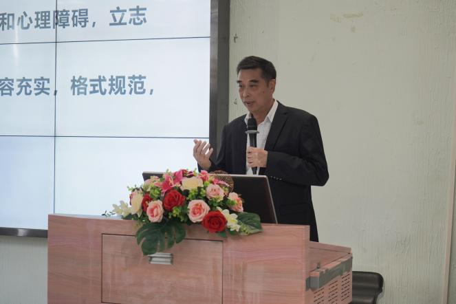 人文社科类培训专场授课专家苏桂宁教授对毕业论文撰写规则进行解读,强调论文指导教师应严格按照学校规定的毕业论文格式指导毕业生撰写毕业论文。苏教授结合自身的论文指导经验和管理工作中发现的问题,从毕业论文指导的意义、指导老师的任务、论文选题环节到答辩环节等十个方面对论文指导全过程进行培训,培训内容系统全面、通俗易懂,指导意见具体明了、针对性强。苏院长建议老师们在进行论文指导时,要因材施教,了解学生心理,了解每个学生在论文写作上的长处和短处,从主题修改、材料修改、结构修改、语言修改等方面抓住关键点,指导到位。