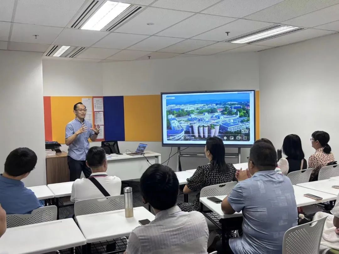 参访新加坡学府是此次行程的重要内容之一。行程伊始,南洋理工大学讲师Mr. Eric Yii与教师团分享该校在教学、运营和管理方面的经验。随后带领教师团走进南洋理工大学,深入体验其浓厚的学术氛围。