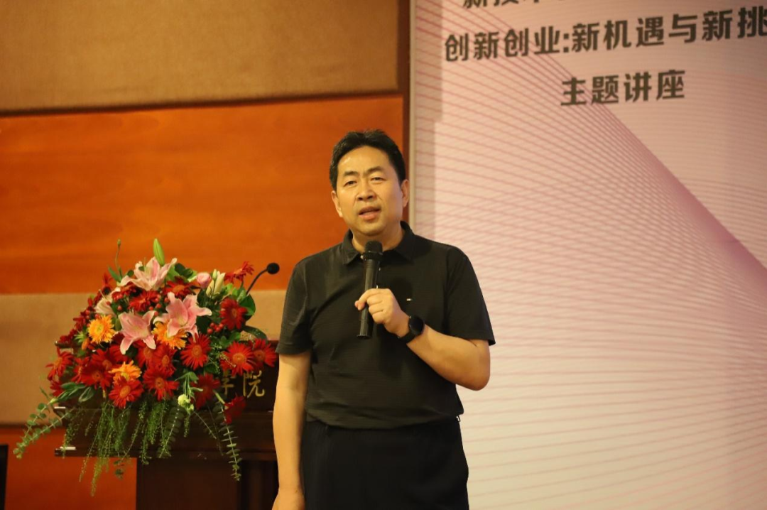 讲座伊始,任教授向同学们介绍了党二十大的关键词“高质量发展”和“中国式现代化”,并通过华为公司的例子分析企业发展和创新受阻的原因是技术难、人才难和方向难。任教授引用党的二十大报告:“加快实施创新驱动发展战略,加快实现高水平科技自立自强,以国家战略需求为导向,集聚力量进行原创性引领性科技攻关,坚决打赢关键核心技术攻坚战,加快实施一批具有战略性全局性前瞻性的国家重大科技项目,增强自主创新能力”,勉励同学们要积极思考和探索新产业新技术的未来。