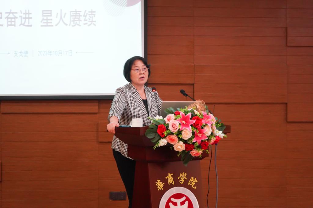 支戈壁副校长从时间和空间两个维度为新教职工进行校史教育,她围绕学校概况和学校“三个五年”发展历史,向各位新入职教职工详细地介绍学校的建设历程与发展节点,并着力阐述了我校师资队伍建设、国际化教育、实验平台建设、科研建设、教学建设与改革等8个方面所取得的突破与创新。支校长强调,建校18年来,学校始终坚持“创百年名校,育华夏英才”的宏伟目标。未来,学校将继续实施“立足大湾区,面向全国,走向世界”战略布局,以服务粤港澳大湾区经济社会发展为导向,形成以商科为主体,文科、工科和其他学科协调发展的办学格局,形成以学习者为中心的个性化教育新形态,构建与未来社会新技术、新业态、新职业相适应的人才培养体系,全面推进具有鲜明特色的高水平应用型大学建设。