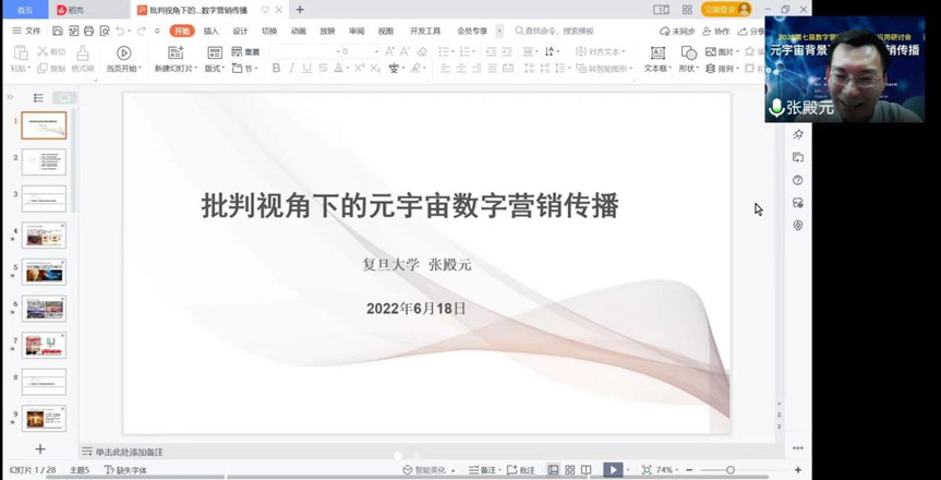 在下午的论坛会议中,复旦大学新闻学院教授,博士生导师、复旦大学全球传播全媒体研究副院长张殿元教授以批判视角看待元宇宙数字营销传播。指出元宇宙世界的三层塔包括物质、精神和灵魂,元宇宙不是数字孪生,而是与现实世界无关的虚拟世界,是满足人们的出世愿望而生元,宇宙的世俗生活是出发点,是不可逾越的“卡夫丁峡谷”,是精神和灵魂世界的必经之地。