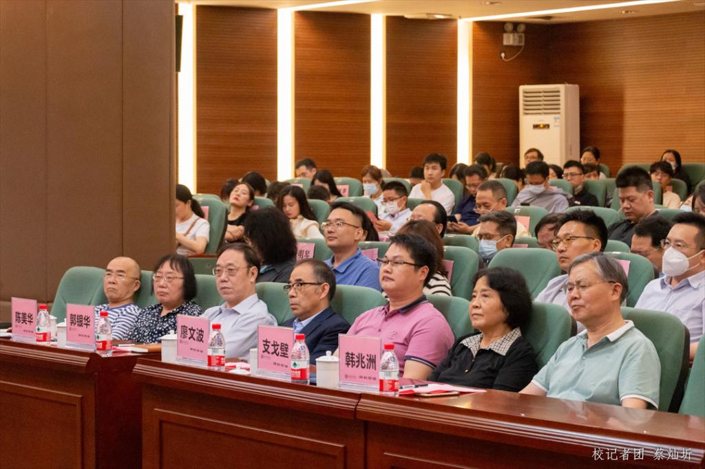 特邀嘉宾东莞理工学院教务处廖文波副处长进行专题报告,他向在座的领导和教师们分享了东莞理工学院产教协同育人的实践经验:一是需求导向,支撑引领制造业创新发展;二是多元参与,探索产教协同育人机制;三是知行合一,构建一流应用型人才培养体系;四是产教融合,培养新时代卓越工程师。他从理念共识、政策指引、需求指引、改革驱动、具体实践等方面详细介绍了现代产业学院的建设实践经验。廖副处长的专题报告站位高、视野大、理念新、内容实、效果很好,使我校教师思路大开,深受启发,受益匪浅。