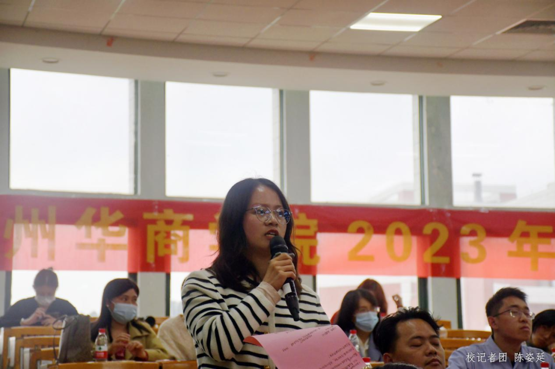 在现场互动答疑环节中,人事处副处长杨俏文、教务处副处长黄静萍、团委书记陈刚、学生处思想教育科科长马卉芳针对参会教师提出的申报条件、教学业绩、辅导员授课等问题做出详细回答。本环节反响热烈,多名参会教师反映本次宣讲会收获良多,并对申报信息与审核标准形成更深刻清晰的理解,更加明确了自身在未来努力的方向,将以更积极上进的面貌来对待本职工作。