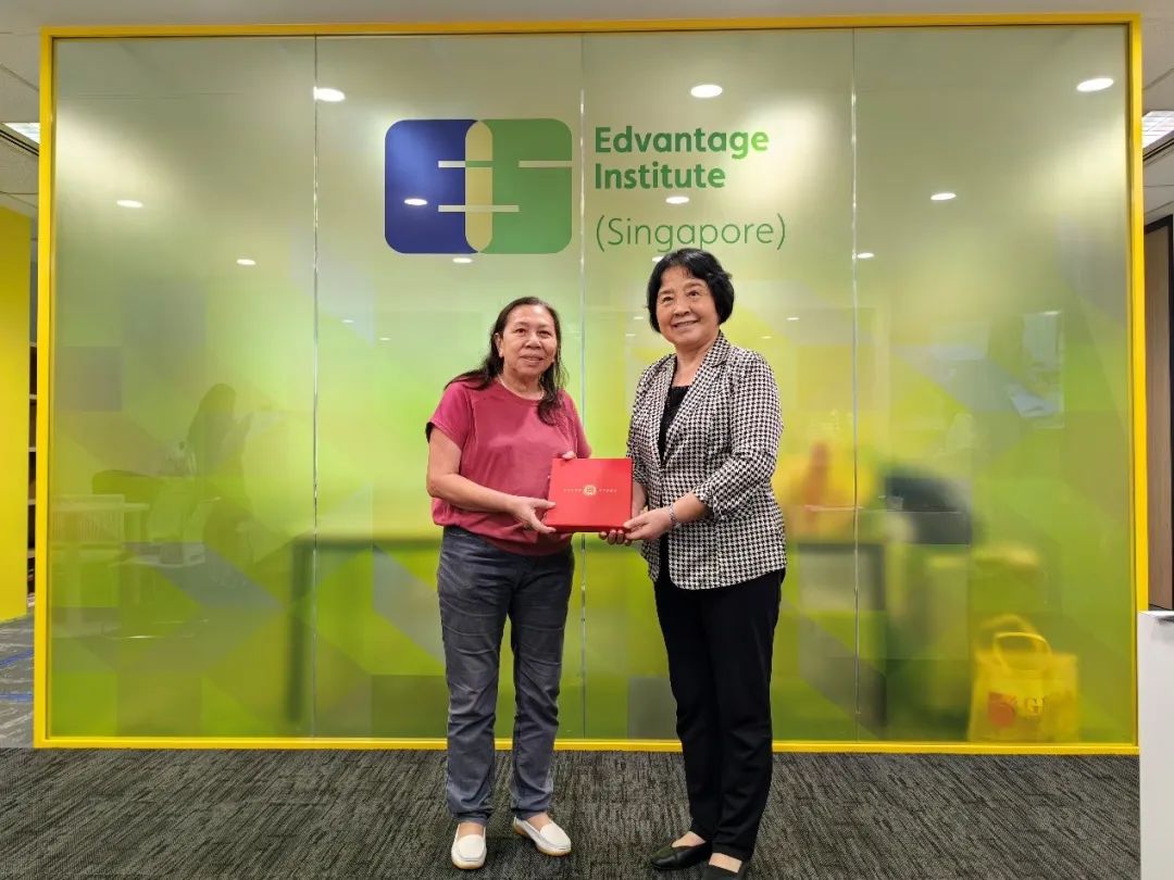 EIS负责人Marhaini和MsChee Meichun女士共同带来了主题为《新加坡教育体系介绍》的讲座。两位主讲人详细介绍了新加坡的整个教育体系及其教育理念。在大学教育方面,两位主讲人向访学团教师介绍新加坡五所公立大学和一所私立大学的各自特色和优势。讲座过程中,访学团教师与主讲人积极互动,共同探讨教育体制在学生成长成才中的重要作用,探讨两国教育体系的异同与特色。讲座结束后,支戈壁副校长对两位主讲人细致专业的讲解表示衷心的感谢,并赠予纪念品。