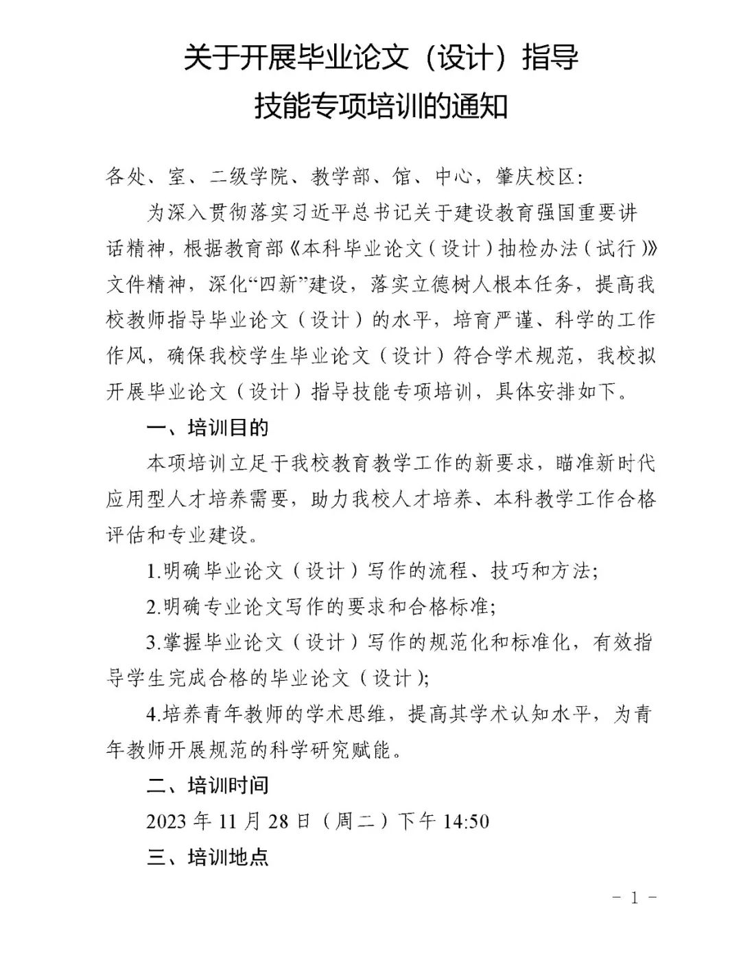 11月28日 毕业论文(设计)指导技能专项培训